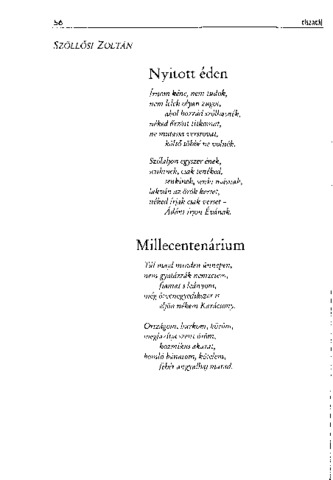 Szöllősi Zoltán: Nyitott éden ; Millecentenárium ; Imamalom : [versek]. Tiszatáj, (51) 3. pp. 56-57. (1997)