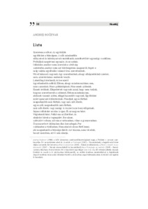Hočevar Andrej: Lista ; Hozzászokni a fényhez ; A folyó ráteszi tenyerét ; Kitartás ; Küldetés. Tiszatáj, (70) 1. pp. 18-23. (2016)