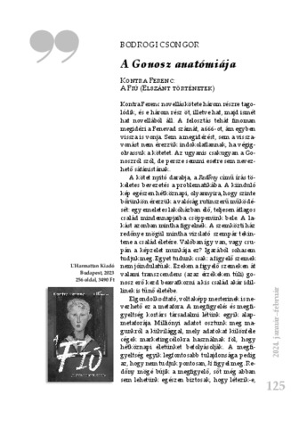 Bodrogi Csongor: A Gonosz anatómiája - Kontra Ferenc: A fiú : elszánt történetek : [könyvismertetés]. Tiszatáj, (78) 1-2. pp. 125-127. (2024)
