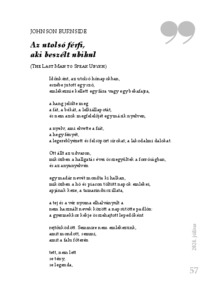 Burnside Johnson: Az utolsó férfi, aki beszélt ubihul = The last man to speak Ubykh : [vers]. Tiszatáj, (78) 7. pp. 57-58. (2024)