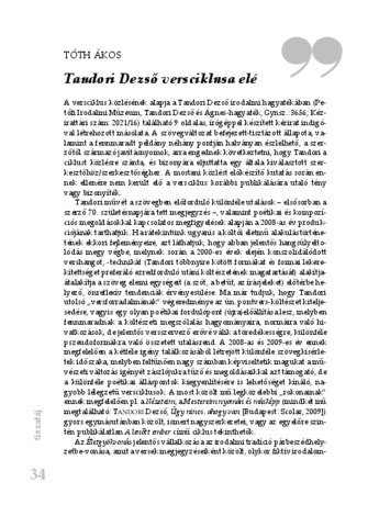 Tóth Ákos: Tandori Dezső versciklusa elé. Tiszatáj, (78) 9. pp. 34-35. (2024)
